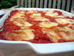 5- Mélangez la moitié du parmesan avec le hachis de viande. Farcissez les cannelloni avec cette préparation ; disposez-les dans un plat beurré, nappez-les de sauce tomate, parsemez-les de noisettes de beurre et saupoudrez-les avec le reste de parmesan. Faites cuire dans le four pendant 45 min.