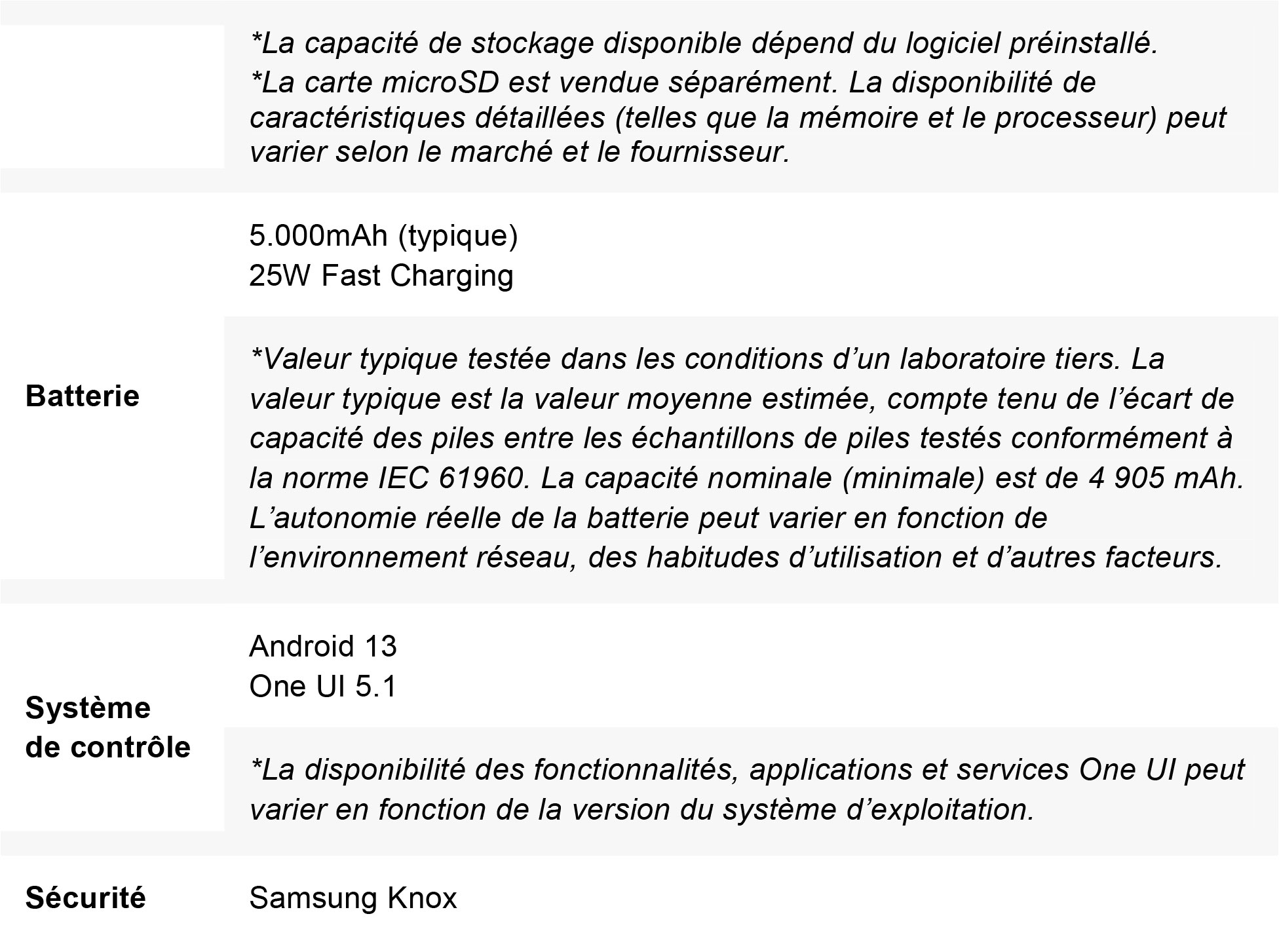 Avec le Galaxy A54 5G et le Galaxy A34 5G, vous êtes assuré de bénéficier de quatre générations de mises à jour du système d’exploitation et de cinq ans de mises à jour de sécurité. Vous avez donc accès aux derniers logiciels et à la sécurité la plus récente et vous pouvez optimiser le cycle de vie de votre smartphone.