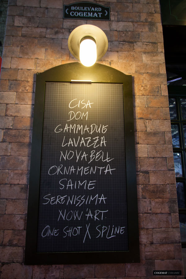 COGEMAT CERAMIC, représente 7 marques italiennes GAMMA DUE, ORNAMENTA, DOM, NOVABELL, CISA, SAIME et SERENISSIMA des gammes de produits qui s’inspirent de la haute couture à travers les effets tissu effets papiers peints ainsi que les effets briques et bois destinés en premier lieu aux architectes et architectes d’intérieures en second lieu aux promoteurs immobiliers ceci sans oublier les particuliers qui peuvent en trouver leurs bonheurs.