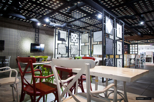 Le Stand de COGEMAT CERAMIC au salon de Carthage 2016 est un vrai chef d’œuvre architectural mariant les produits de la société à d’autres éléments de décoration pour crée un espace convivial et accueillant pour tous leurs partenaires et clients. C’est un stand concept le bistrot à l’anglaise qui reflète leurs projets références coffee shop restaurant et salon de thé.