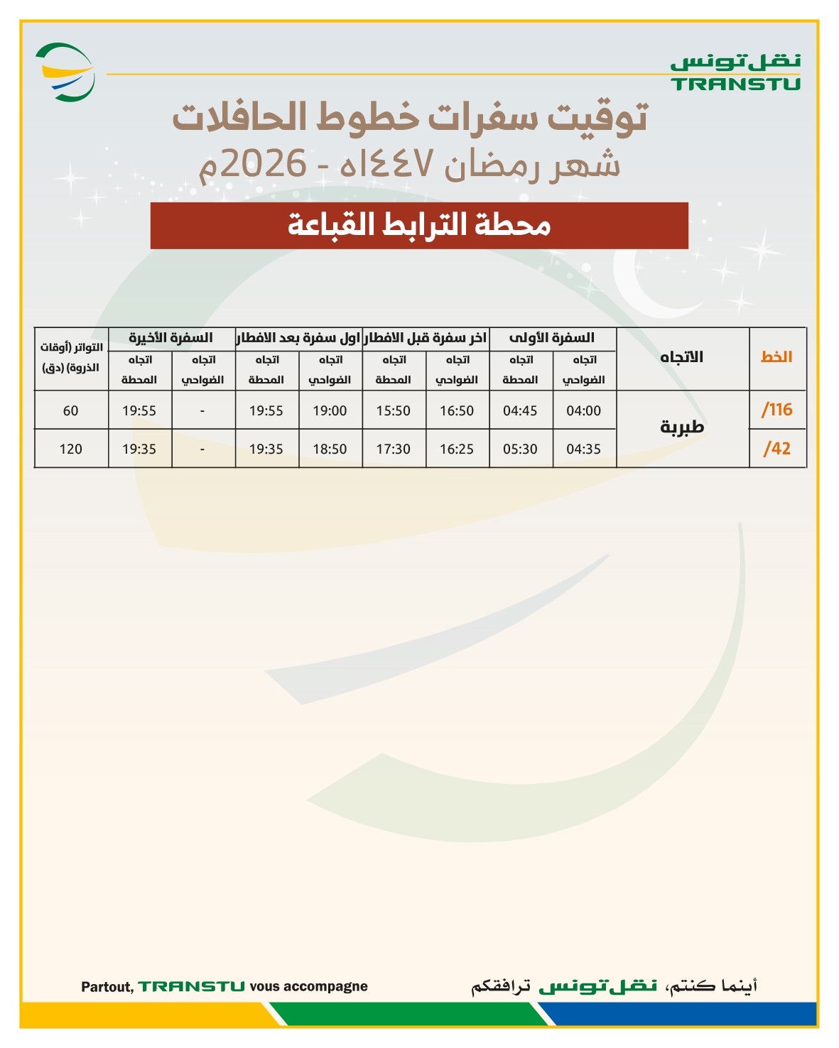 أهم المحطات المضمنة في الخطوط الخاصة برمضان: