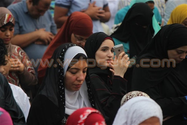 ومن أبرز الصور التى أثارت الجدل، أثناء صلاة العيد بأحد الساحات، هى صورة لفتاتان يقفان فى وسط جموع المصليين أثناء سجودهم، ويبدو على ملامح وجههم الخجل.