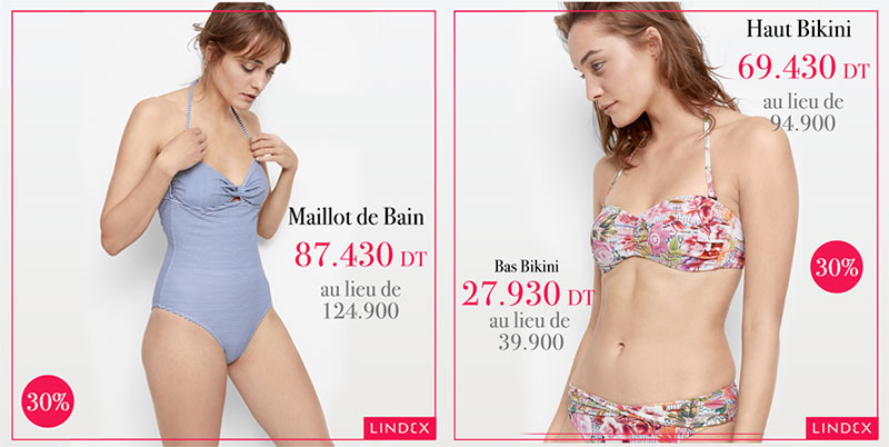 Bénéficiez de 30% de réduction sur une sélection de maillots de bain et de lingerie Lindex grâce au bon de réduction disponible sur Tuniscope Shopping.