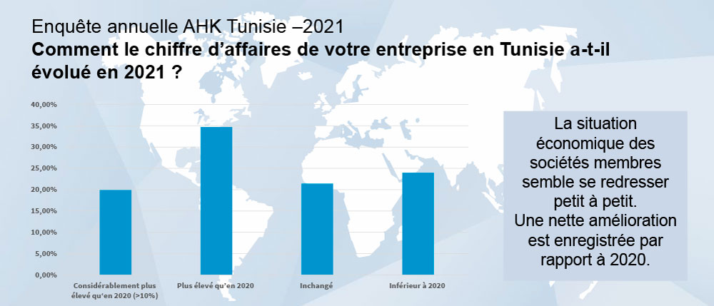 L´AHK Tunisie a mené son enquête annuelle. Près de 200 entreprises membres, succursales et filiales allemandes en Tunisie ont participé à cette enquête début octobre 2021.